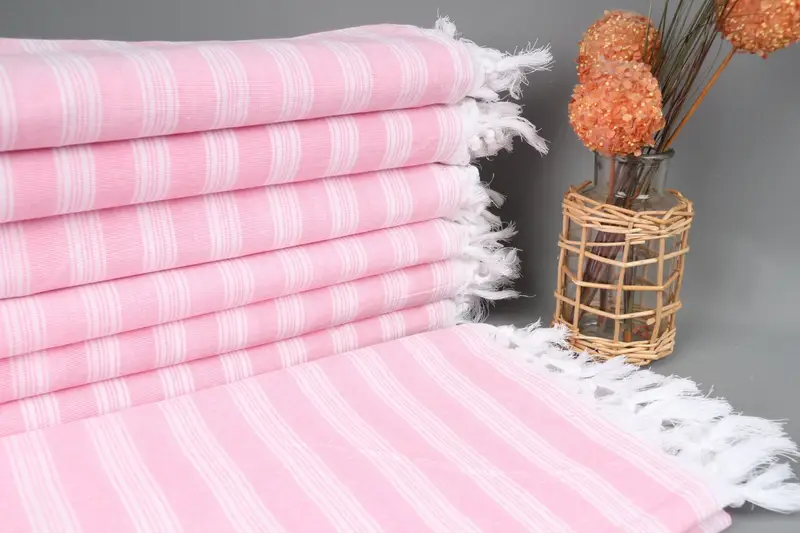 Toalla de playa turca a rayas rosa claro personalizada, 40 x 71 pulgadas