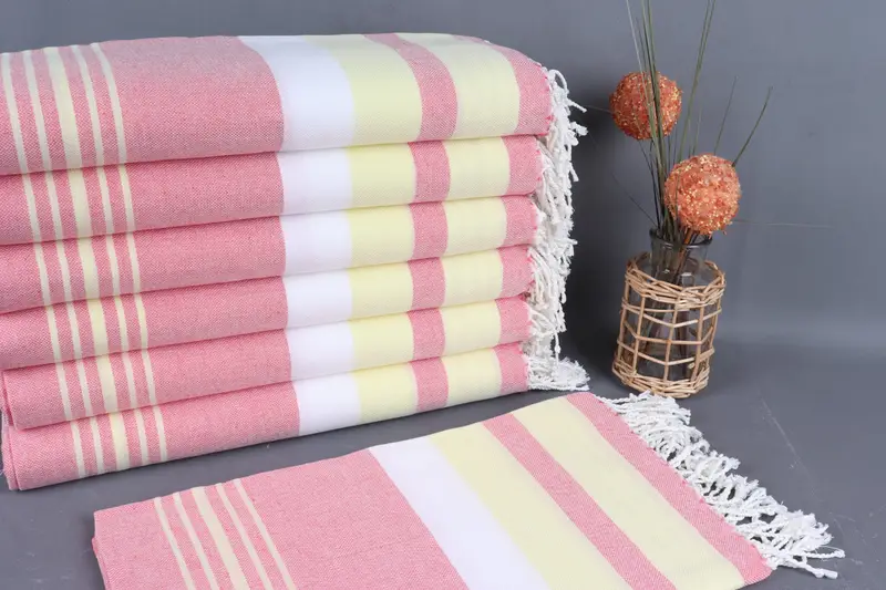 Toalla de Playa de Algodón Orgánico Rayas Beige, 40x75 Pulgadas