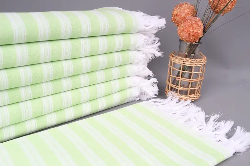 El hilo de algodón orgánico garantiza toallas suaves, absorbentes y de alta calidad. Caracterizadas por su versatilidad, estas toallas están meticulosamente tejidas en dimensiones de 40x71 pulgadas (100x180 centímetros) con una tolerancia de 2 pulgadas (5 centímetros). Su peso de 210 gramos da como resultado un producto ligero pero duradero.