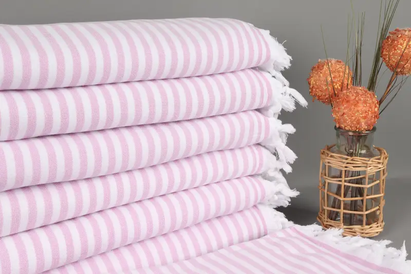 Toalla de playa orgánica Rayas beige, algodón de rizo, 36 x 71 pulgadas