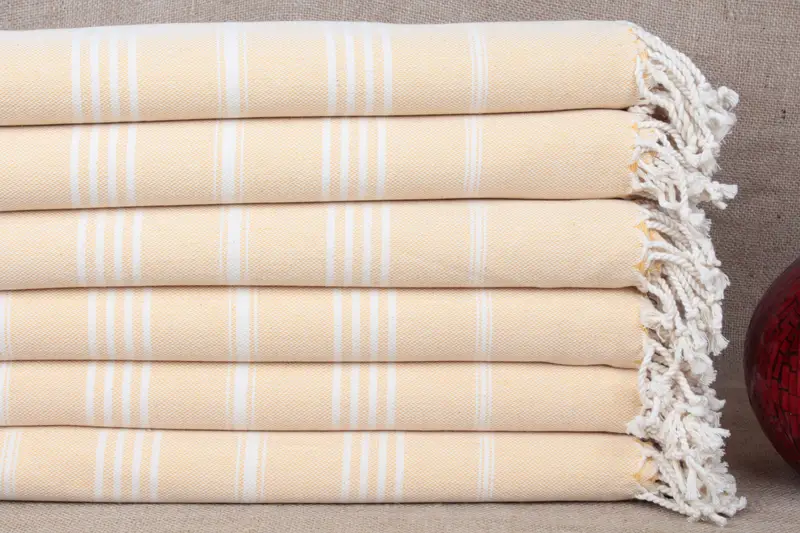 Caracterizadas por su puro algodón orgánico, estas toallas ofrecen una alta absorbencia y un secado rápido. Esto garantiza la creación de toallas turcas multiusos y ecológicas. El tamaño de 40x71 pulgadas (100x180 cm) y el peso de aproximadamente 300 gramos brindan un equilibrio entre usabilidad y portabilidad liviana. El tejido a mano da como resultado ligeras tolerancias de ± 2 pulgadas o 5 cm en las dimensiones.