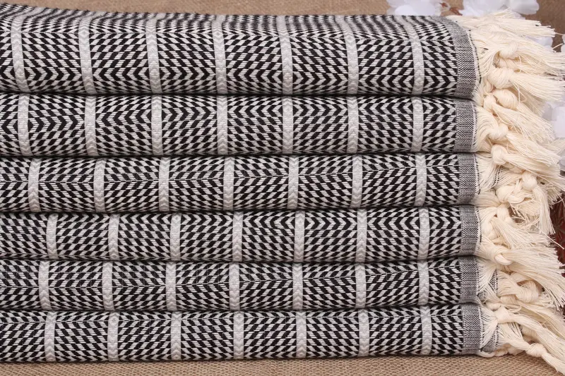 Las toallas de algodón turco están hechas de algodón orgánico puro, lo que garantiza una excelente absorbencia y propiedades de secado rápido. Caracterizadas por un tamaño de 40x71 pulgadas o 100x180 cm, estas toallas pesan aproximadamente 440 gramos. Las tolerancias de tejido para las dimensiones son ± 2 pulgadas o 5 cm.