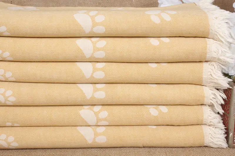 Toalla de playa de algodón orgánico turco con diseño de pata mostaza, 36 x 71 pulgadas