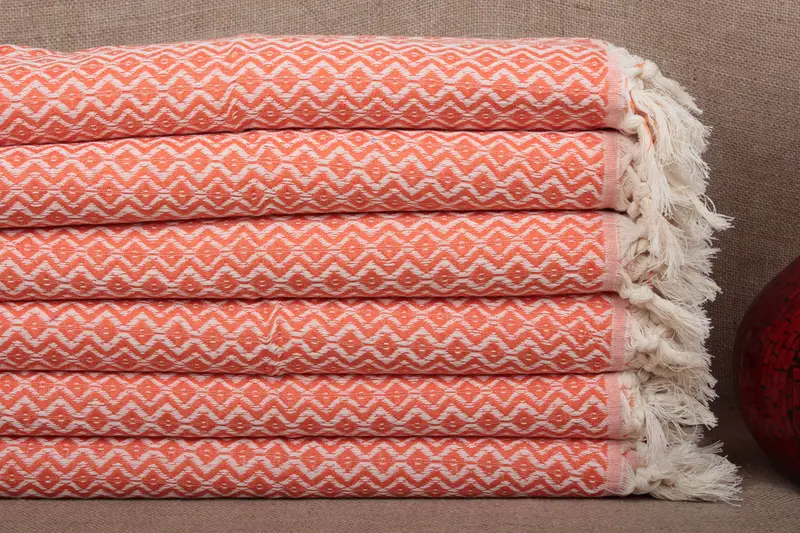 Caracterizado por su composición de fibras, el material de algodón orgánico garantiza una alta absorbencia y propiedades de secado rápido. El resultado es una toalla ligera pero excepcionalmente suave; cada toalla pesa aproximadamente 120 gramos. Cada producto muestra la precisión del tejido a mano, con dimensiones de 18x36 pulgadas o 45x90 centímetros, lo que permite una tolerancia de ± 2" o 5 cm.