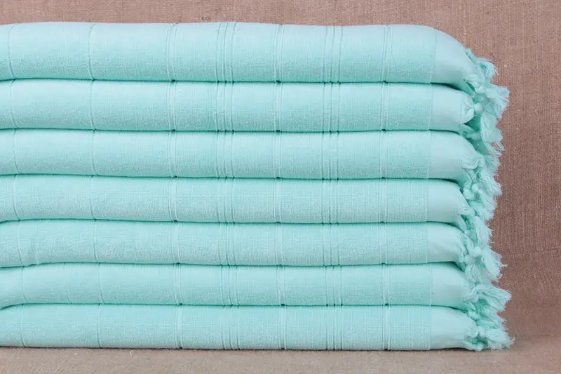 Hecha a mano con técnicas de tejido de doble cara, la toalla turca ofrece versatilidad en múltiples usos. Su proceso de tejido a mano permite ligeras discrepancias en las medidas, asegurando un toque personalizado.