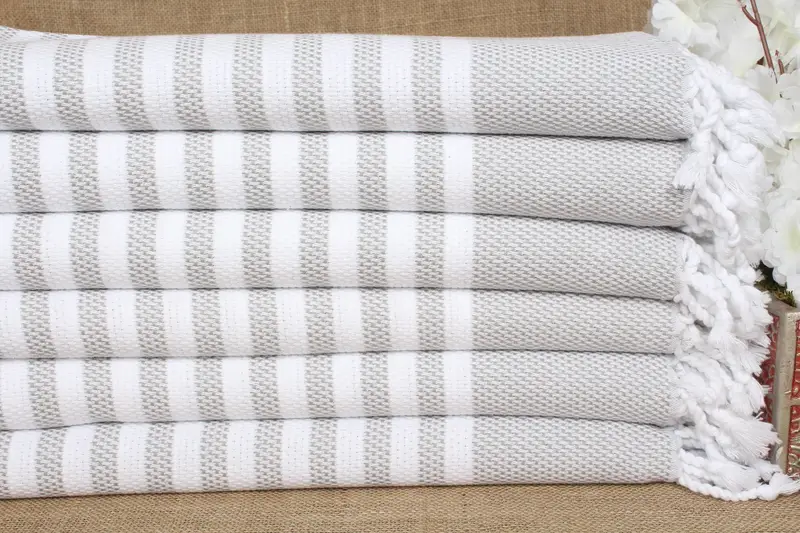 Toalla de algodón orgánico gris claro a rayas personalizada, 40 x 67 pulgadas
