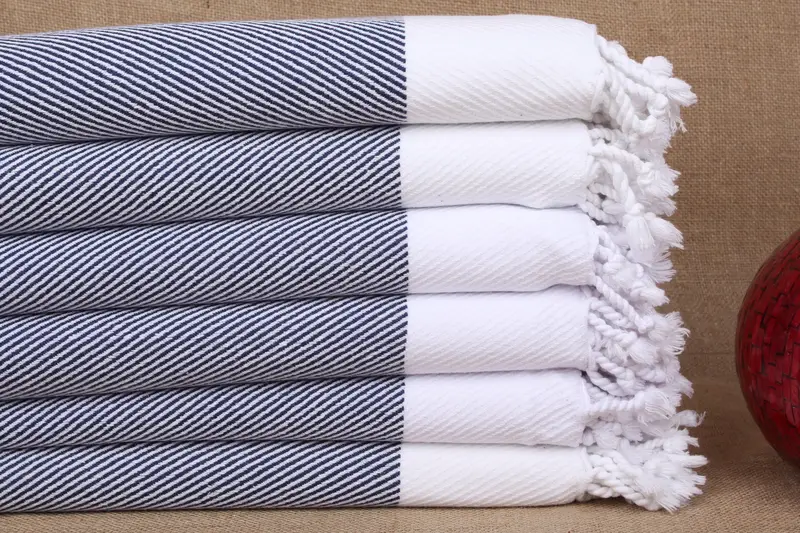 Las toallas están hechas de algodón orgánico puro, lo que garantiza una alta absorbencia y características de secado rápido. Dando como resultado un producto suave y duradero, la composición de fibras garantiza versatilidad para diversos usos. Las dimensiones de las toallas son 40x71 pulgadas o 100x180 centímetros, con un peso aproximado de 400 gramos. Las tolerancias de tejido son de ±2 pulgadas o 5 centímetros debido al proceso de elaboración manual.