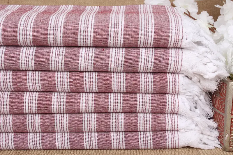 La toalla de playa turca se caracteriza por estar confeccionada con material de algodón orgánico puro, lo que garantiza una alta absorbencia y propiedades de secado rápido. Mide 40x71 pulgadas (100x180cm) con un peso de aproximadamente 210 gramos y tiene una tolerancia de tejido a mano de ± 2 pulgadas (5 cm).
