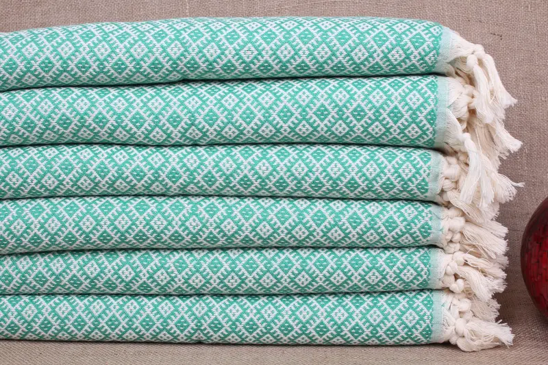Las dimensiones de la toalla de mano miden 20x38 pulgadas o 50x95 cm. Las tolerancias del tejido a mano dan como resultado dimensiones de más o menos 2 pulgadas (5 cm). El producto presenta un estado preencogido, lo que da como resultado medidas consistentes.