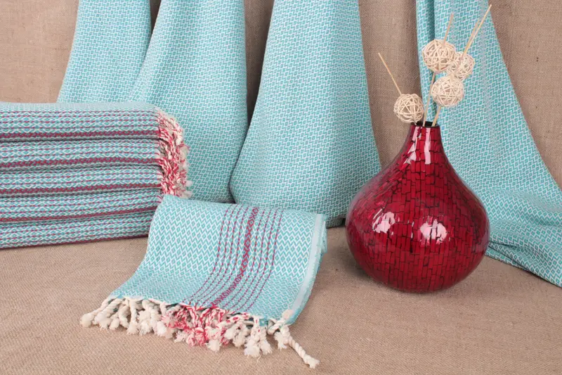 El algodón orgánico caracteriza las toallas, asegurando una alta absorbencia y un secado rápido. Mide 40x71 pulgadas (100x180 cm) con una tolerancia de ± 2" o 5 cm debido al tejido, cada pieza pesa aproximadamente 400 gramos.