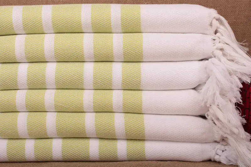 Toalla de playa de algodón orgánico Chevron verde pistacho, 40 x 71 pulgadas