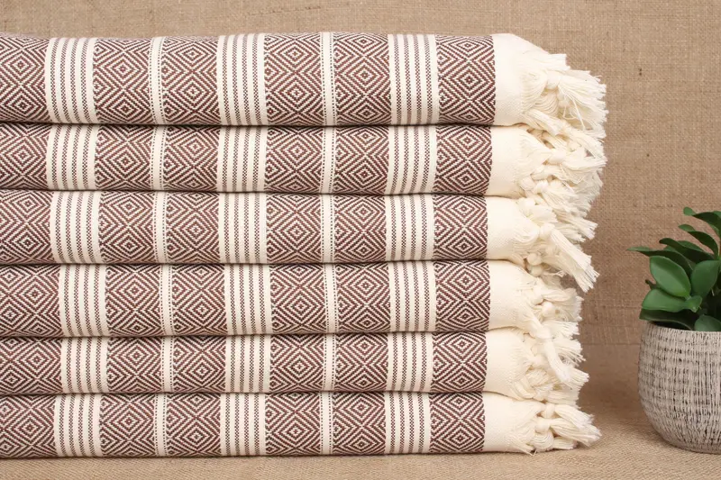 La toalla turca está confeccionada con algodón orgánico puro, lo que garantiza una alta absorbencia y un secado rápido, lo que caracteriza su idoneidad para uso multiuso. Mide 38x69 pulgadas o 95x175 cm, con un peso de aproximadamente 440 gramos. Las tolerancias de tejido son ± 2" o 5 cm.