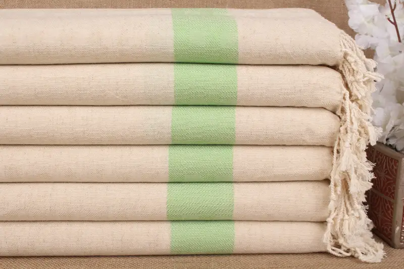 Toalla de baño de lino verde pistacho a rayas, 36 x 71 pulgadas