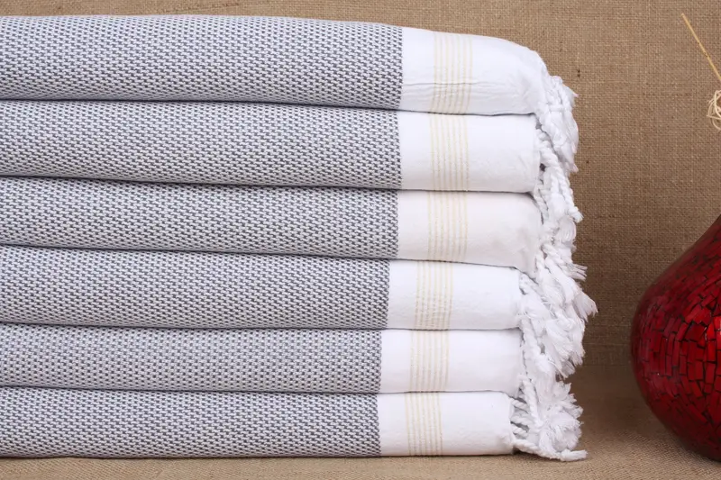 Caracterizada por su puro algodón orgánico, la toalla turca destaca por su alta capacidad de absorción y secado rápido. Con un peso de aproximadamente 390 gramos, las dimensiones de 40x71 pulgadas (100x180 centímetros) brindan una amplia cobertura. El tejido a mano da lugar a posibles variaciones de tamaño de hasta ±2 pulgadas (5 centímetros).