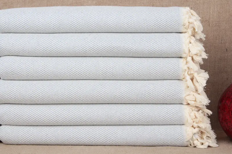 El algodón turco, si se menciona, es un material orgánico conocido por sus propiedades de alta absorbencia y secado rápido. Caracterizadas por su tejido de doble cara, estas toallas están confeccionadas con hilo de algodón 100% turco, lo que garantiza durabilidad y suavidad. El peso es de aproximadamente 400 gramos, lo que ofrece una sensación de ligereza pero sustancial.