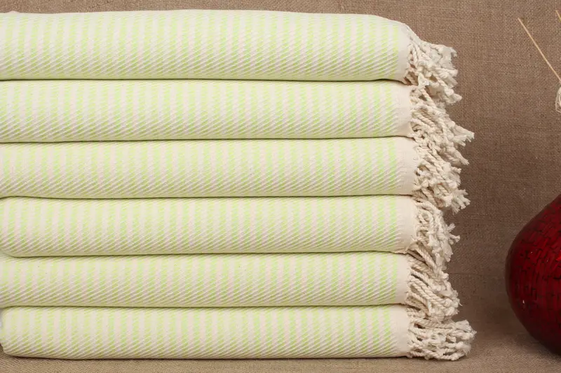 Las toallas turcas, caracterizadas por su composición de fibra de algodón orgánico, garantizan una absorbencia superior y un secado rápido. Estas toallas tejidas a mano de doble cara miden 40x71 pulgadas o 100x180 cm y pesan aproximadamente 340 gramos. Las tolerancias de tejido son de ± 2 pulgadas o 5 cm, lo que da como resultado un producto duradero y versátil.