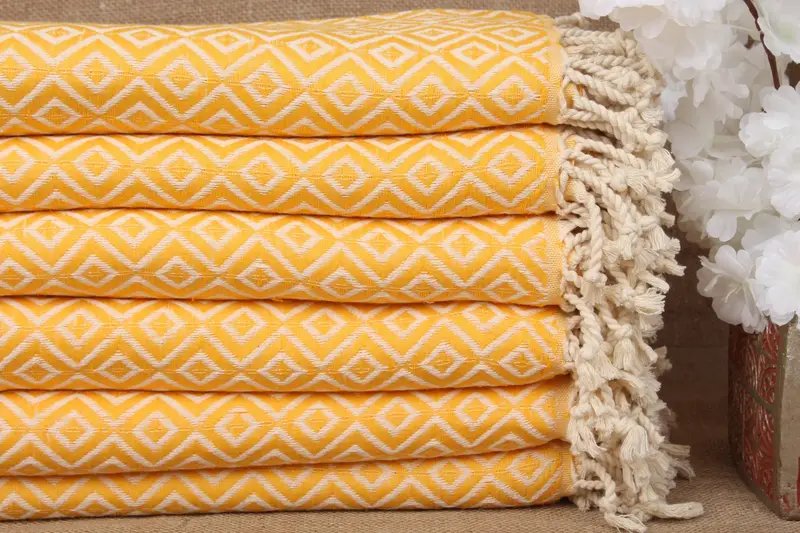El producto en cuestión comprende toallas de algodón orgánico de alta calidad que están meticulosamente tejidas a mano, lo que garantiza una absorbencia superior y un secado rápido. Caracterizada por su composición pura de 100% algodón turco, cada toalla exhibe una suavidad excepcional después del lavado. Cada toalla mide 40x71 pulgadas, lo que equivale a 100x180 centímetros, con una tolerancia de ±2 pulgadas o 5 centímetros, resultante de técnicas de tejido tradicionales.