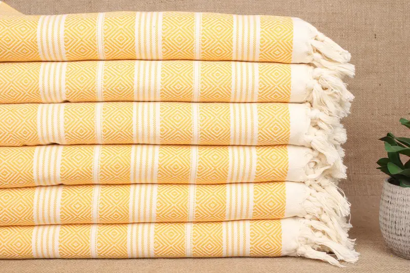 Caracterizada por su fibra de algodón orgánico puro de alta calidad, esta toalla turca es reconocida por su absorbencia superior, lo que garantiza una eficiente absorción de la humedad y un secado rápido. Las dimensiones de esta versátil toalla son 38x69 pulgadas o 95x175 cm, con una tolerancia de ± 2 pulgadas o 5 cm debido al proceso de tejido a mano. El peso de la toalla es de aproximadamente 440 gramos, lo que permite un producto duradero pero liviano.