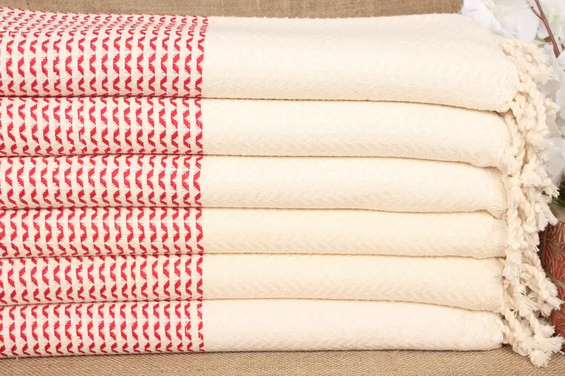 Toalla Turca Hecha a Mano de Algodón Orgánico Rojo, Patrón de Diamantes, 40x77 Pulgadas