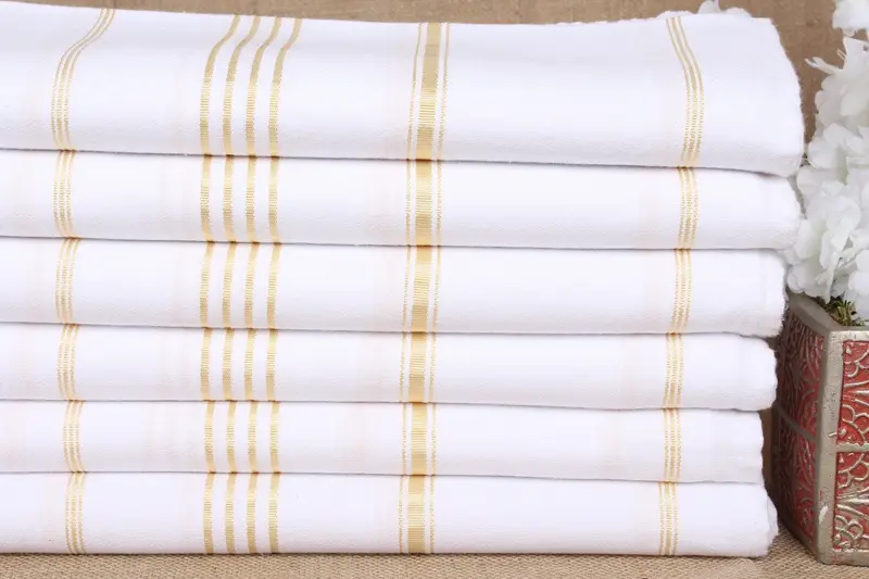 Toalla turca personalizada sin flecos a rayas doradas, beige, 40 x 71 pulgadas