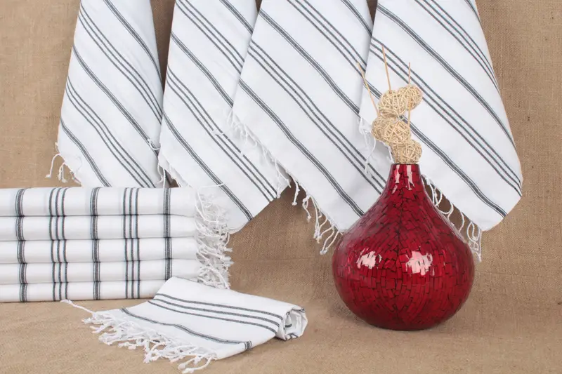 Las dimensiones caracterizan a estas toallas como 24x36 pulgadas (60x90 centímetros), con una tolerancia de tejido a mano de ±2 pulgadas o 5 centímetros. El peso de cada toalla es de aproximadamente 100 gramo...