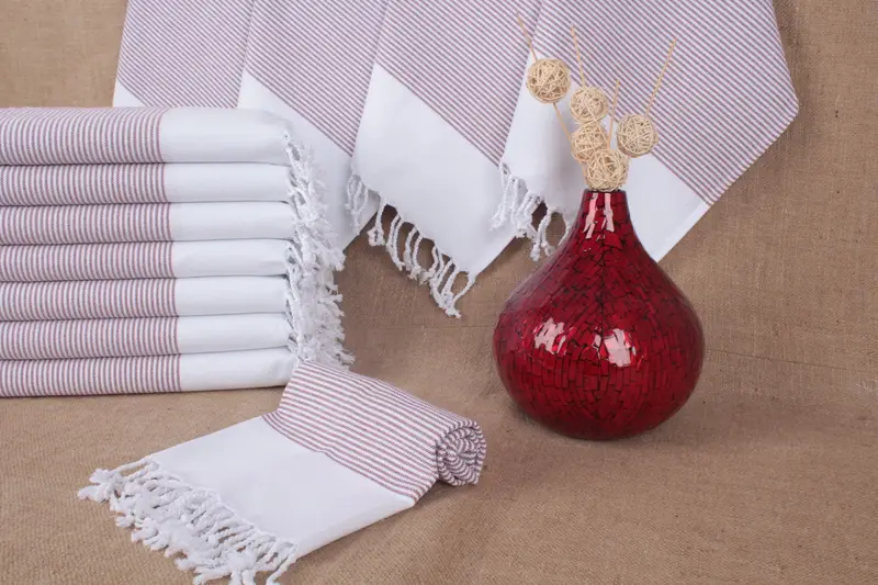 Toalla de Mano de Algodón Orgánico a Rayas, Beige, 18x40 Pulgadas