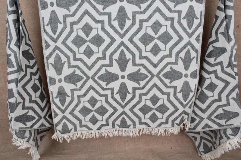 Toalla de mano turca con estampado de tulipanes, color negro, beige, algodón orgánico, 24 x 40 pulgadas