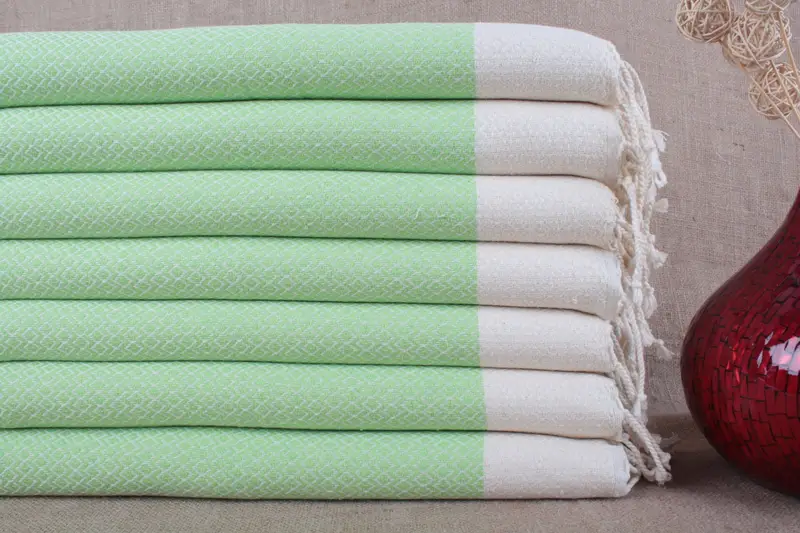 Confeccionadas a mano con algodón orgánico puro, estas toallas turcas presentan una alta absorbencia, lo que garantiza una gestión eficaz de la humedad y un secado rápido. Caracterizadas por su construcción tejida de doble cara, estas toallas brindan un uso versátil en diversos entornos. Las dimensiones de las toallas se especifican en 20x40 pulgadas (50x100 centímetros), con un peso de aproximadamente 122 gramos y una tolerancia de tejido de ±2 pulgadas (±5 centímetros).