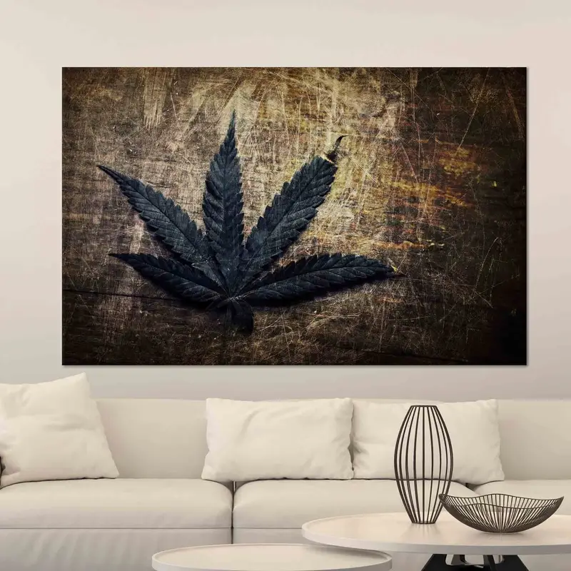 ヴィンテージマリファナの葉のキャンバス: 芸術的、エレガント、プリント装飾