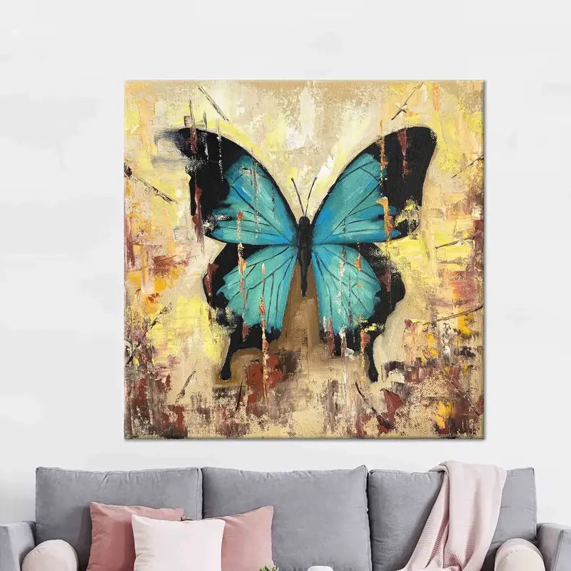 モダンな黄色の抽象的な蝶のキャンバスプリント - エレガントなウォールアート