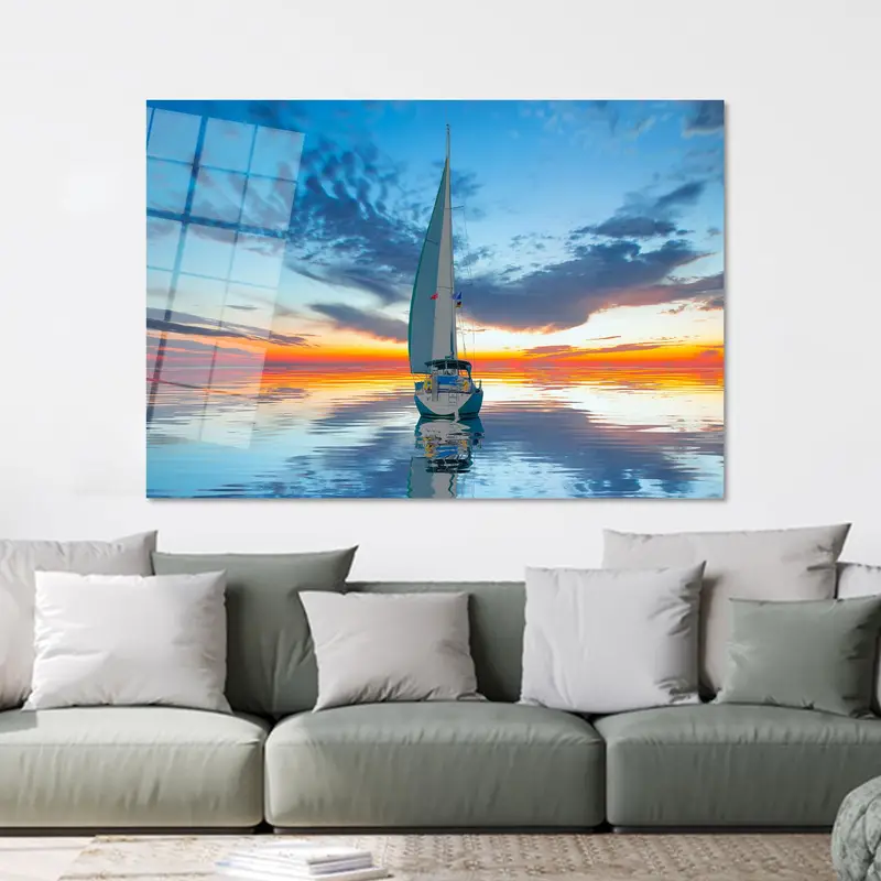 夕焼けの帆船の海景: エレガントなプリントキャンバスアート