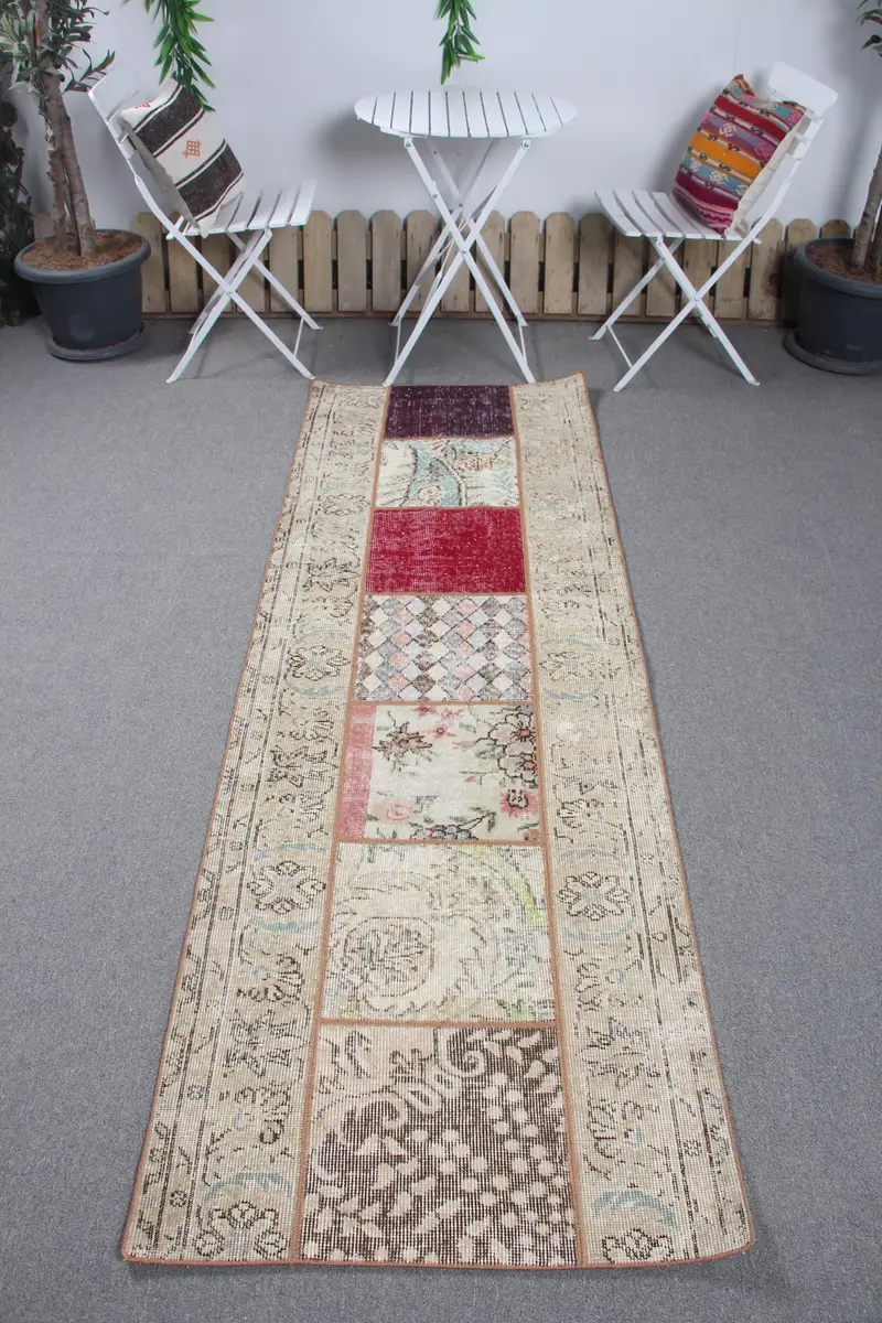 エレガントなベージュとブラウンのラグ、2.6x7.8フィートの自然からインスピレーションを得たデザイン