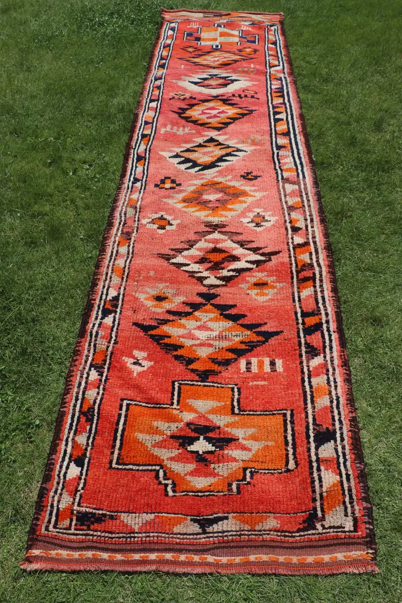 オレンジ&ブルーチェックラグ、3.1x12.3フィートシックな装飾