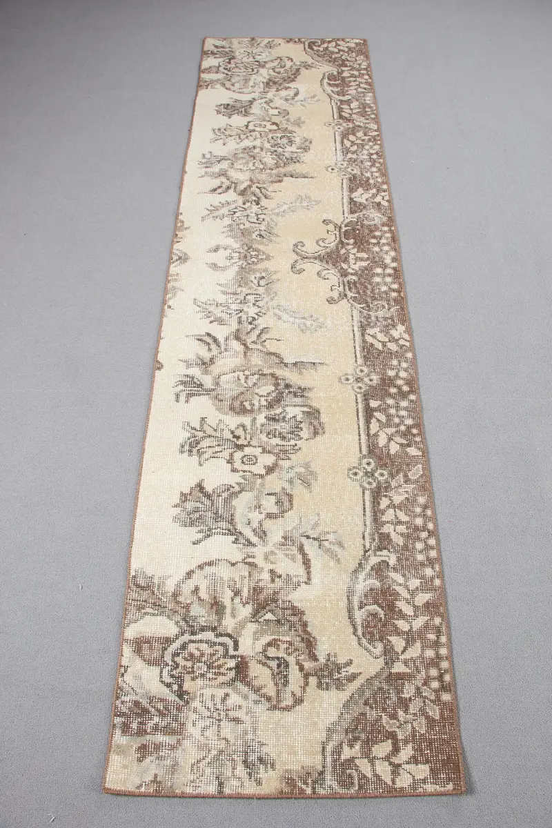 エレガントなベージュのイカットラグ、2.1x8.3フィートのシックな装飾