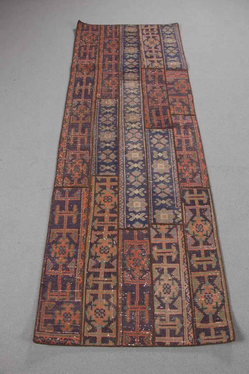 パープル、オレンジの水玉模様のラグ、2.7x7.4フィート