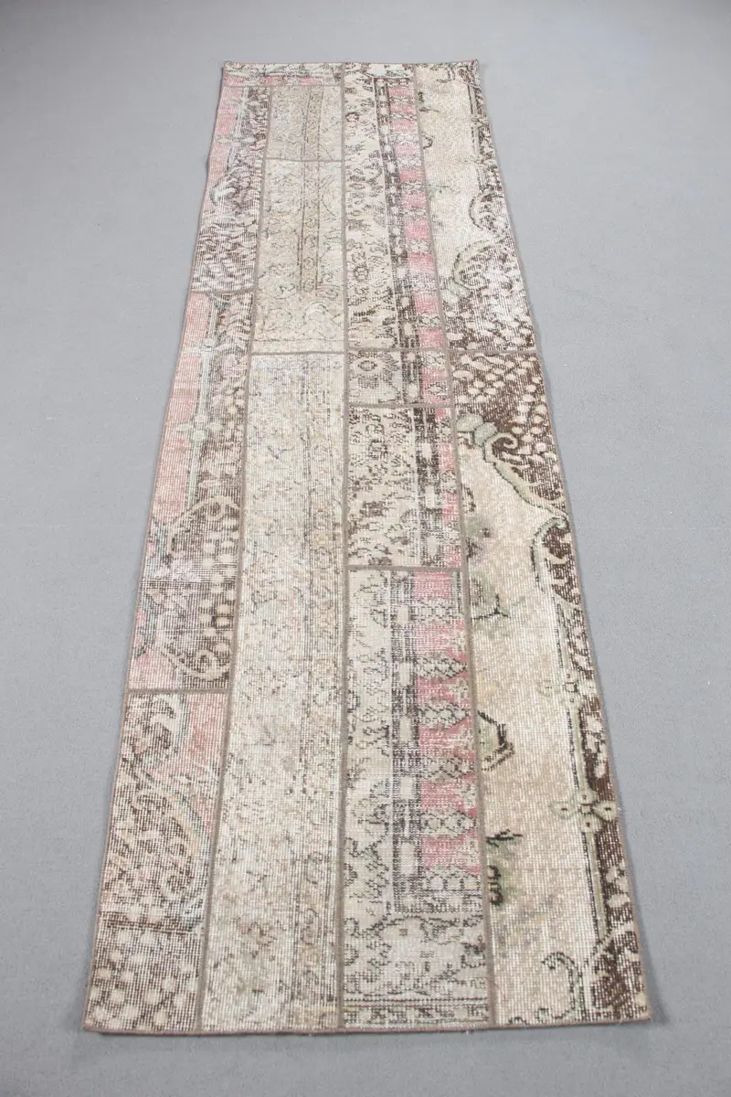 エレガントなベージュ&ブラウンチェックラグ、2.6x8.6フィートのシックな装飾