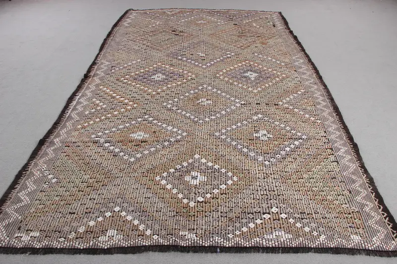 ブラウン & グレー ラグ、6.5x10 フィート...
