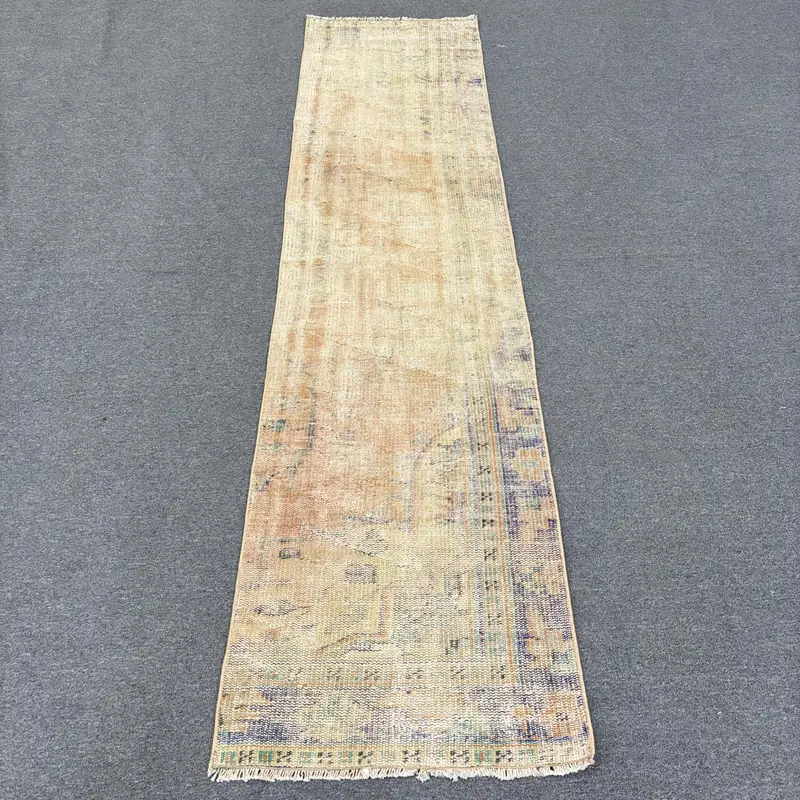エレガントなベージュ&ブルーのオリエンタルラグ、2.1x8.7フィートのシックな装飾