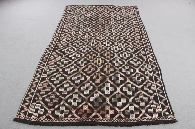 エレガントなブラック&ベージュラグ、5.2x9.3フィートの抽象的なデザイン