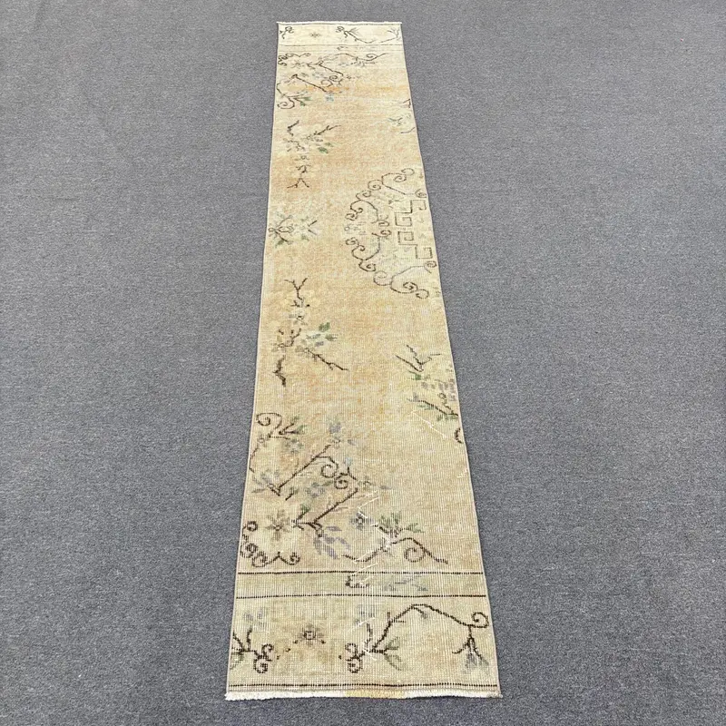 グリーン モロッコ ラグ、1.7x8.8 フィート エレガントな装飾