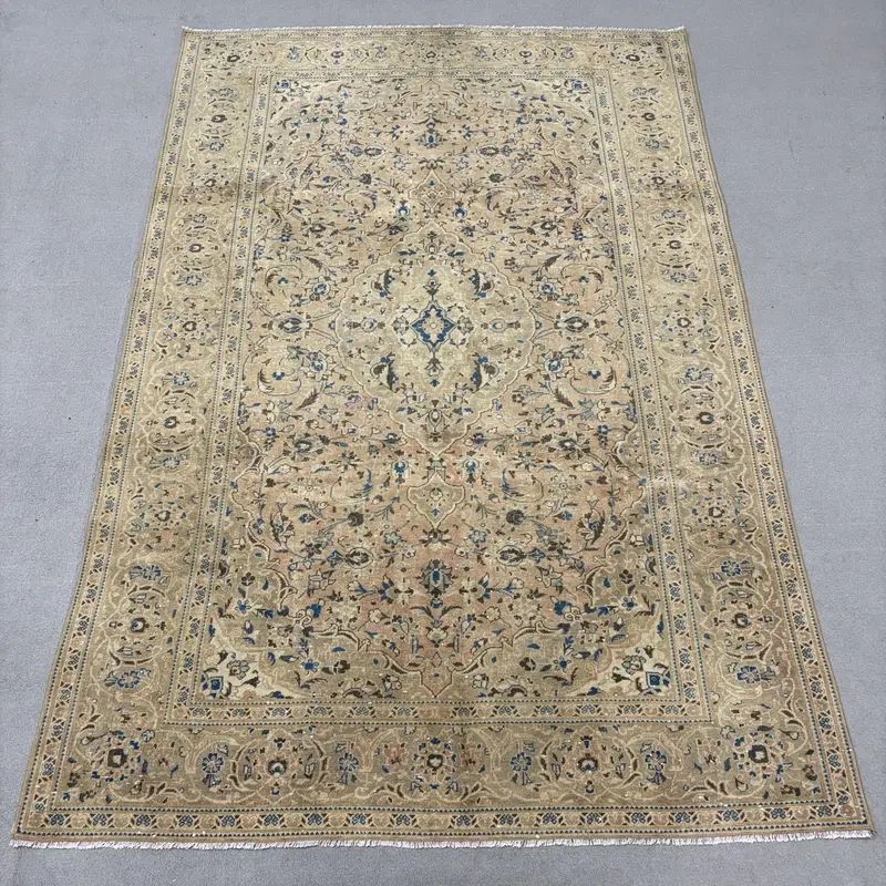 ベージュ & ブルー ボーダー ラグ、190x292 cm エレガントな装飾