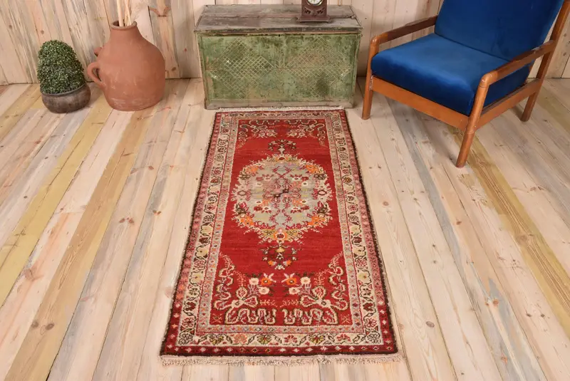 赤と青の迷彩ラグ、2.6x5.4フィートのシックな装飾