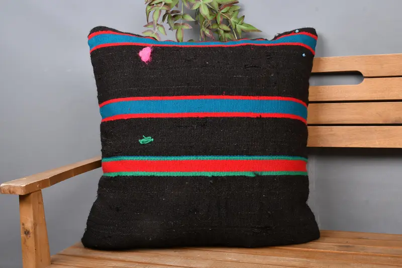 ブラウン & ブロンズ ストライプ クッション、ヴィンテージ刺繍クッション