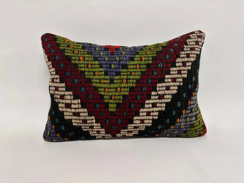 レッド サウスウェスタン クッション、16 x 24 刺繍入りリネンクッション