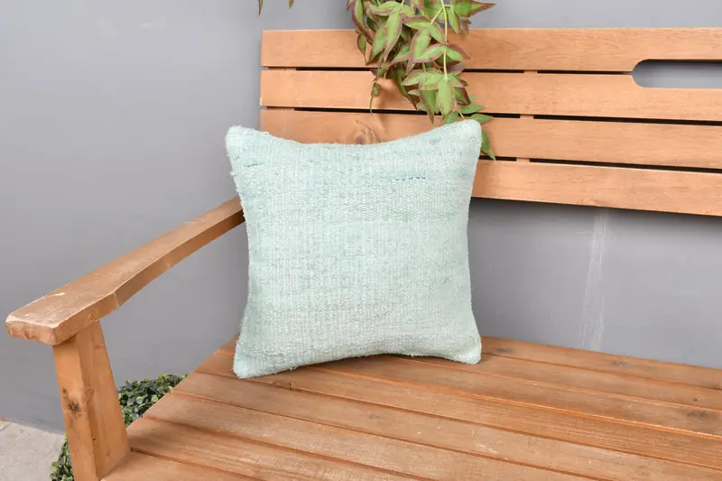 環境に優しい南西部グリーンキリム枕、14x14 手作りクッション