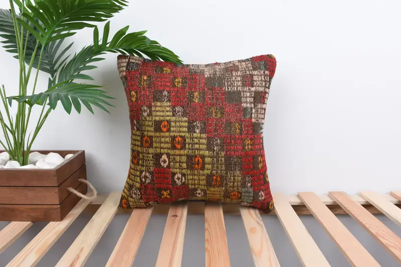 グリーン & レッド サウスウェスタン クッション、16 x 16 刺繍クッション