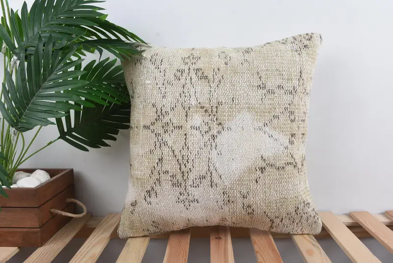 ベージュ サウスウェスタン クッション 18x18 刺繍クッション ヴィンテージチャーム付き