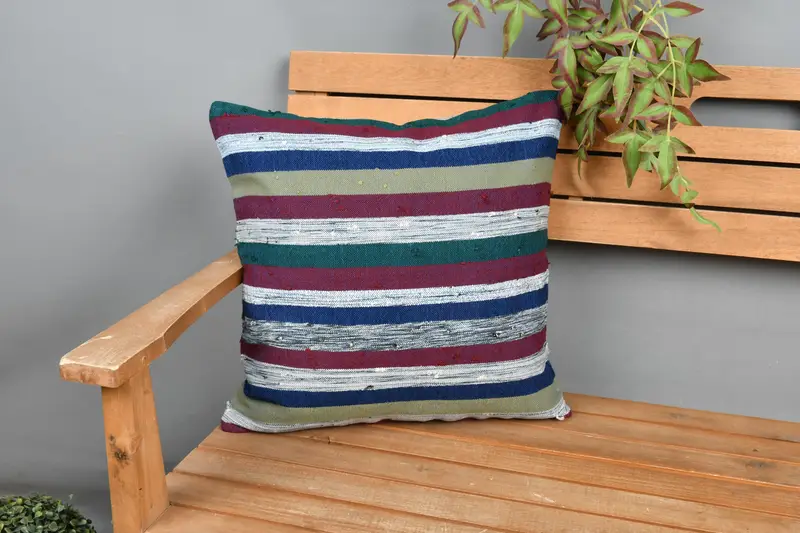 レッド&ブロンズストライプ枕、18x18刺繍入りク...