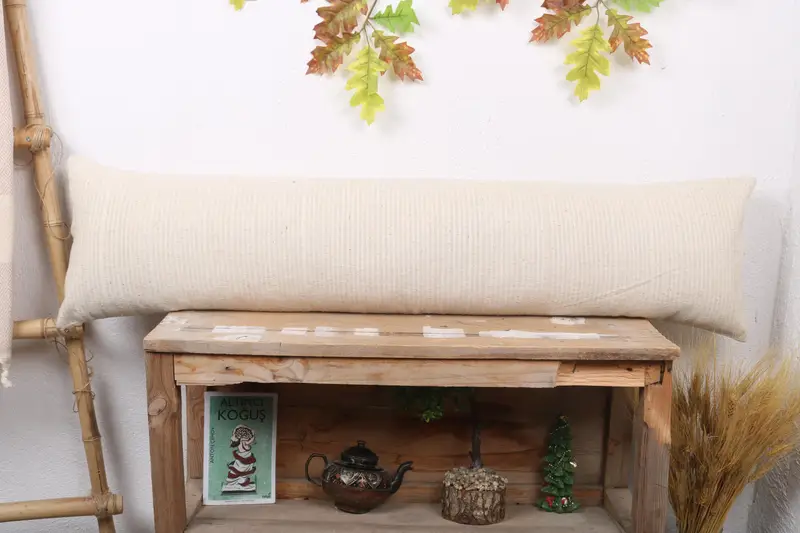 刺繍入り長方形クッション、ヴィンテージストライプクッション