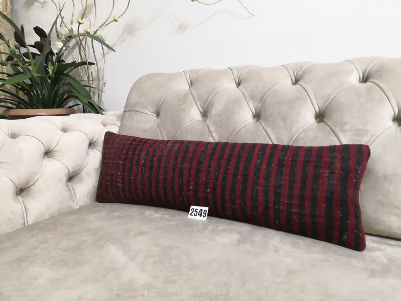 長方形のストライプのクッション、赤と黒のウールの枕